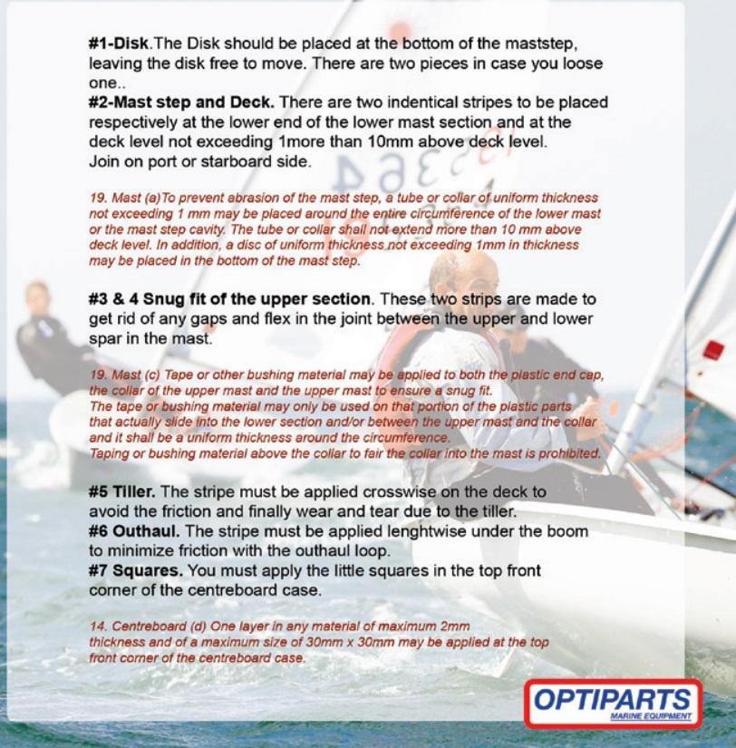 Direk için 2 disk, direk basamağı ve direk güvertesi için 2 şerit, üst direk bölümüne tam oturması için 2 şerit, yekeden güverte aşınması için 1 şerit, dış çekmeyi önlemek için 1 şerit ve salma tahtası için 5 kare içerir.