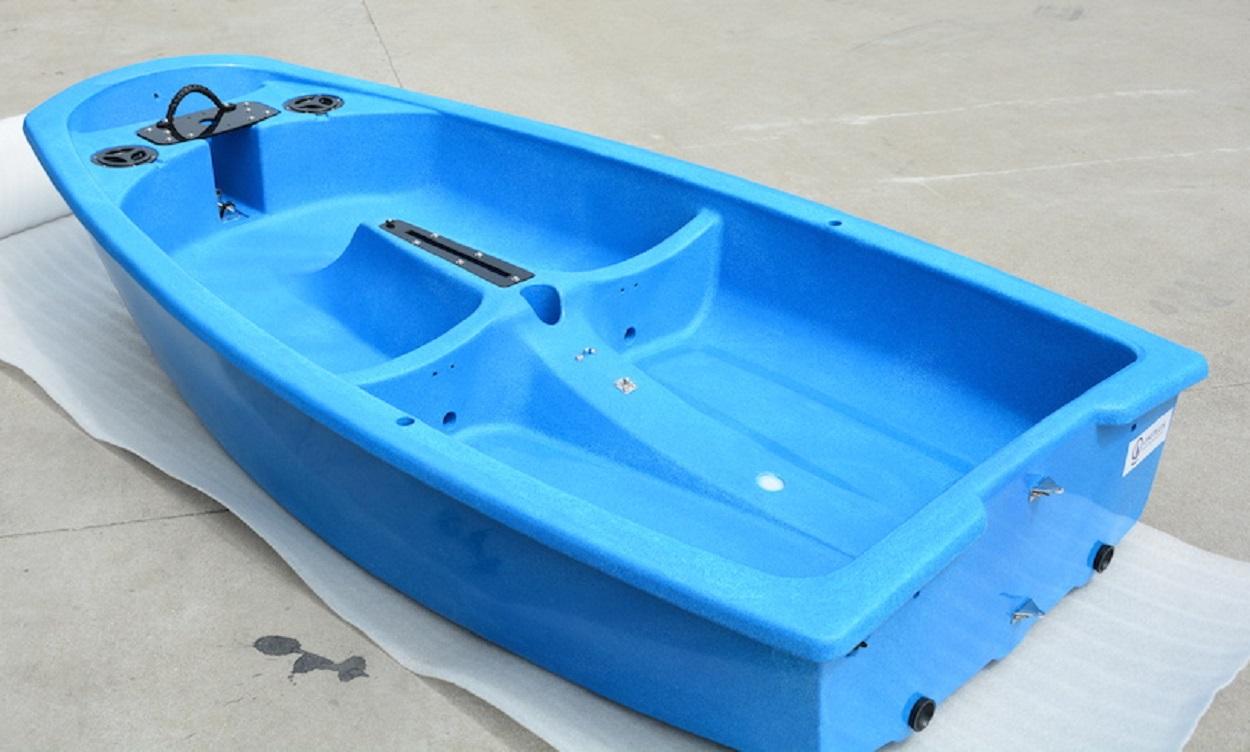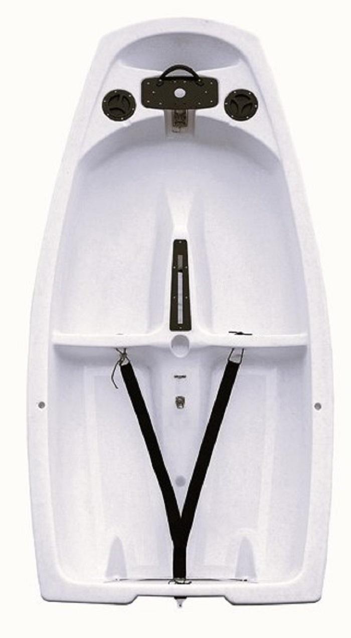 Alüminyum kalıplarda üç kat polietilenden üretilen tekne, standart eğitim optimistinden çok daha sert ve sağlamdır.